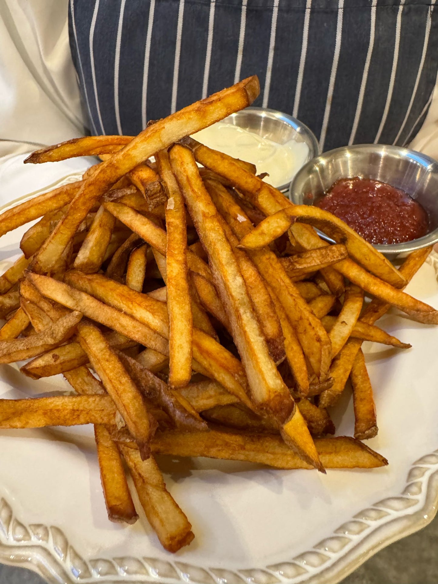 Hand cut Russet potatoes, triple cooked in French duck fat, served with our house made Italian tomato ketchup and house made mayonnaise*.