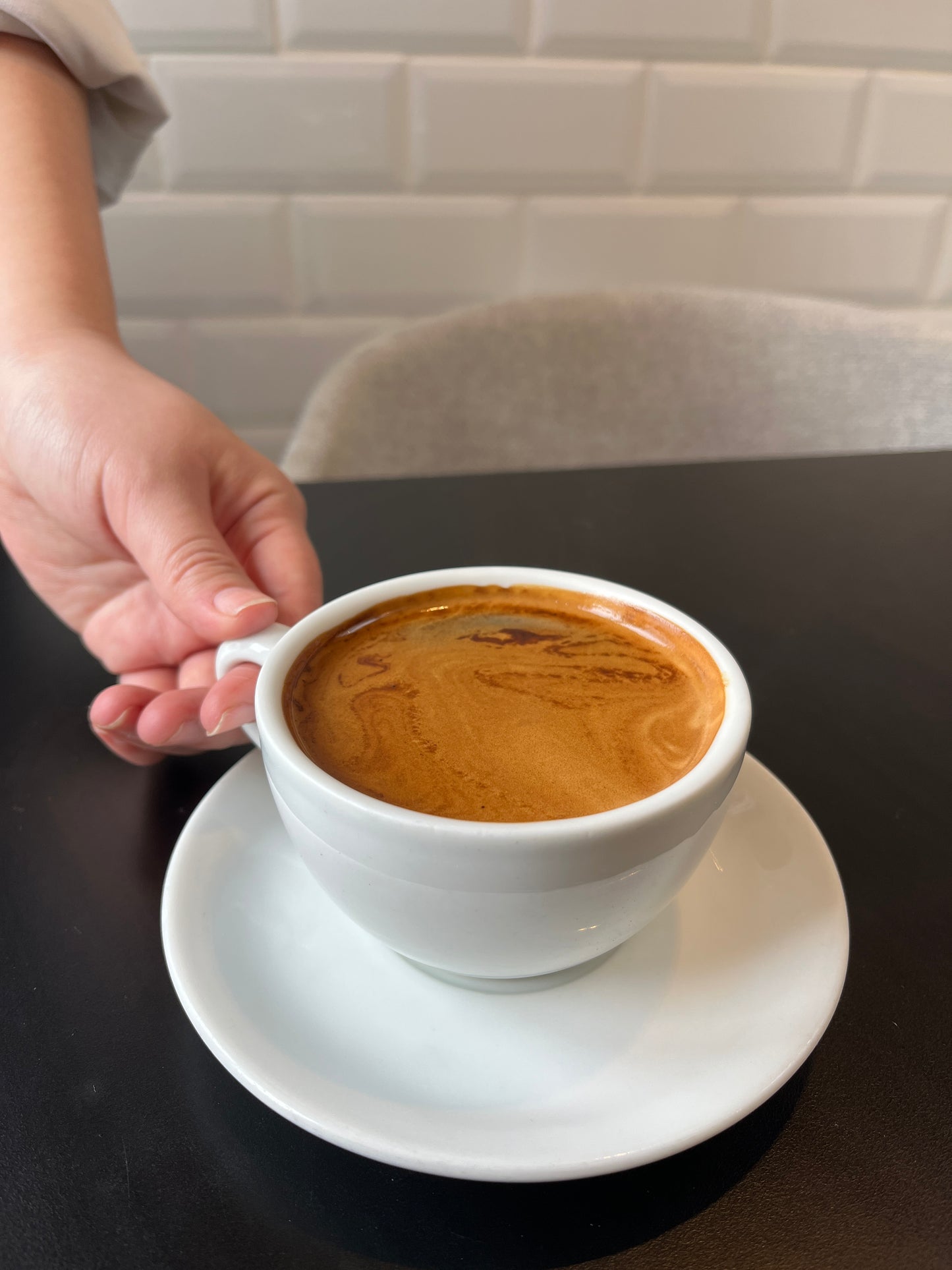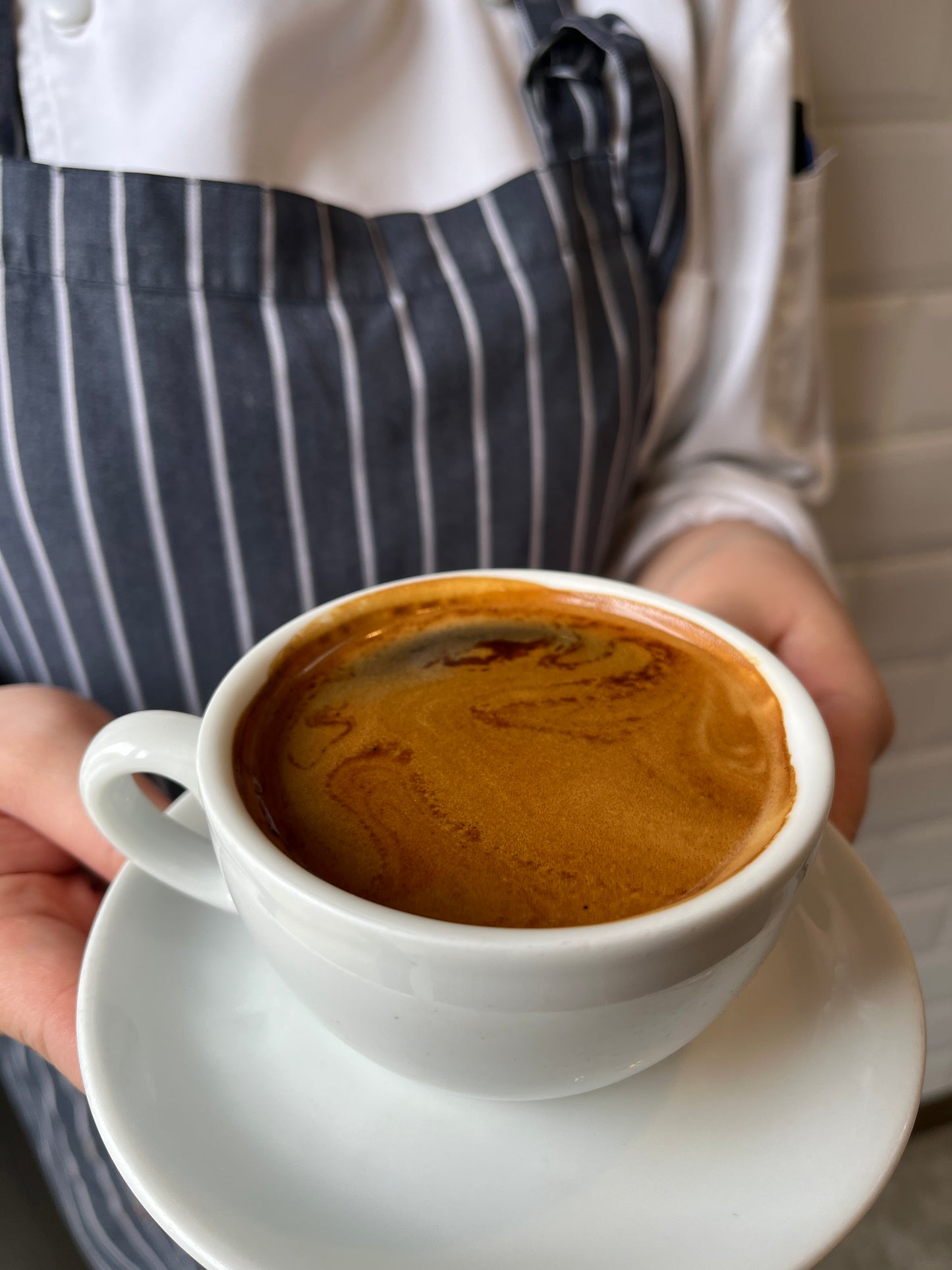 Hot black coffee, stronger than an Americano, available with espresso blend or Haus decaf blend.