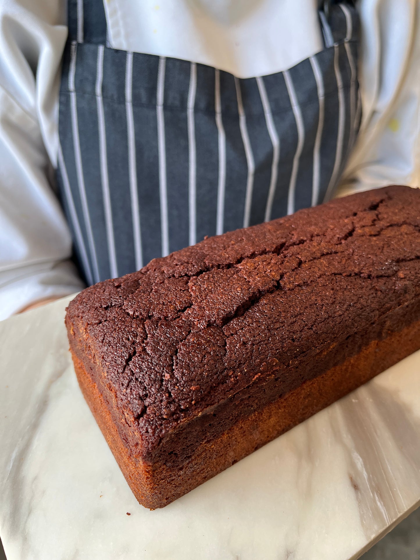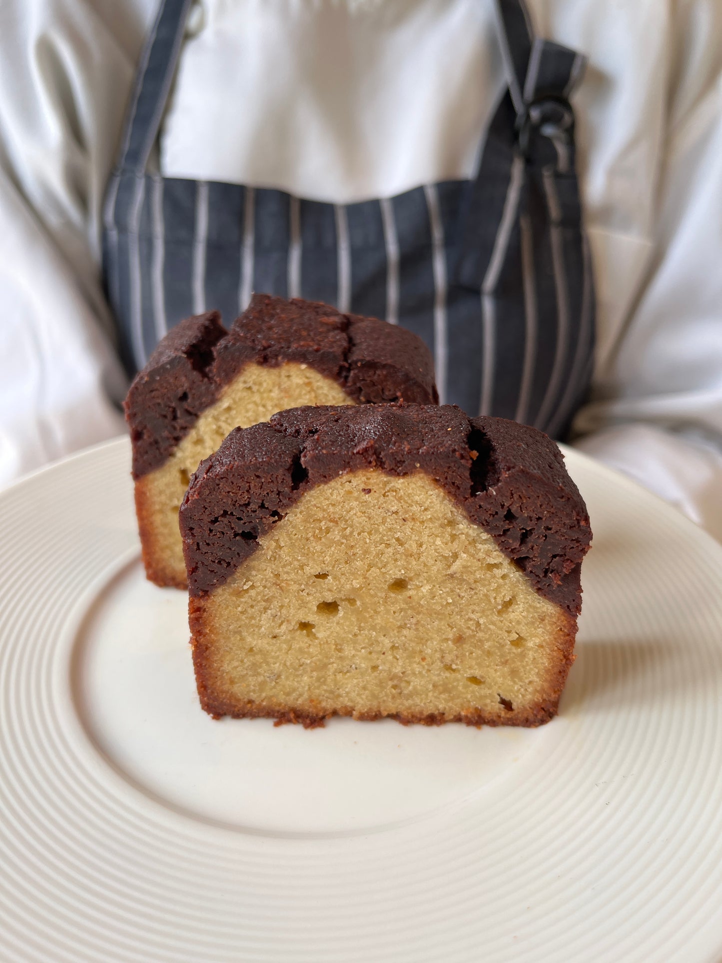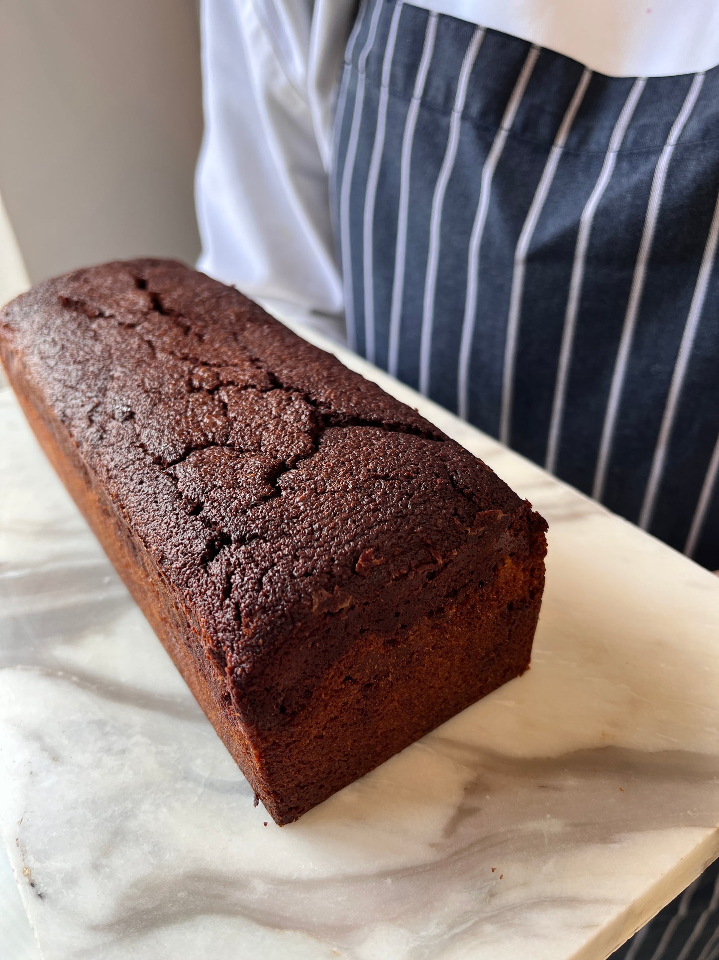 Made with almond flour, this gluten-free pound cake is topped with a layer of 70% dark chocolate.