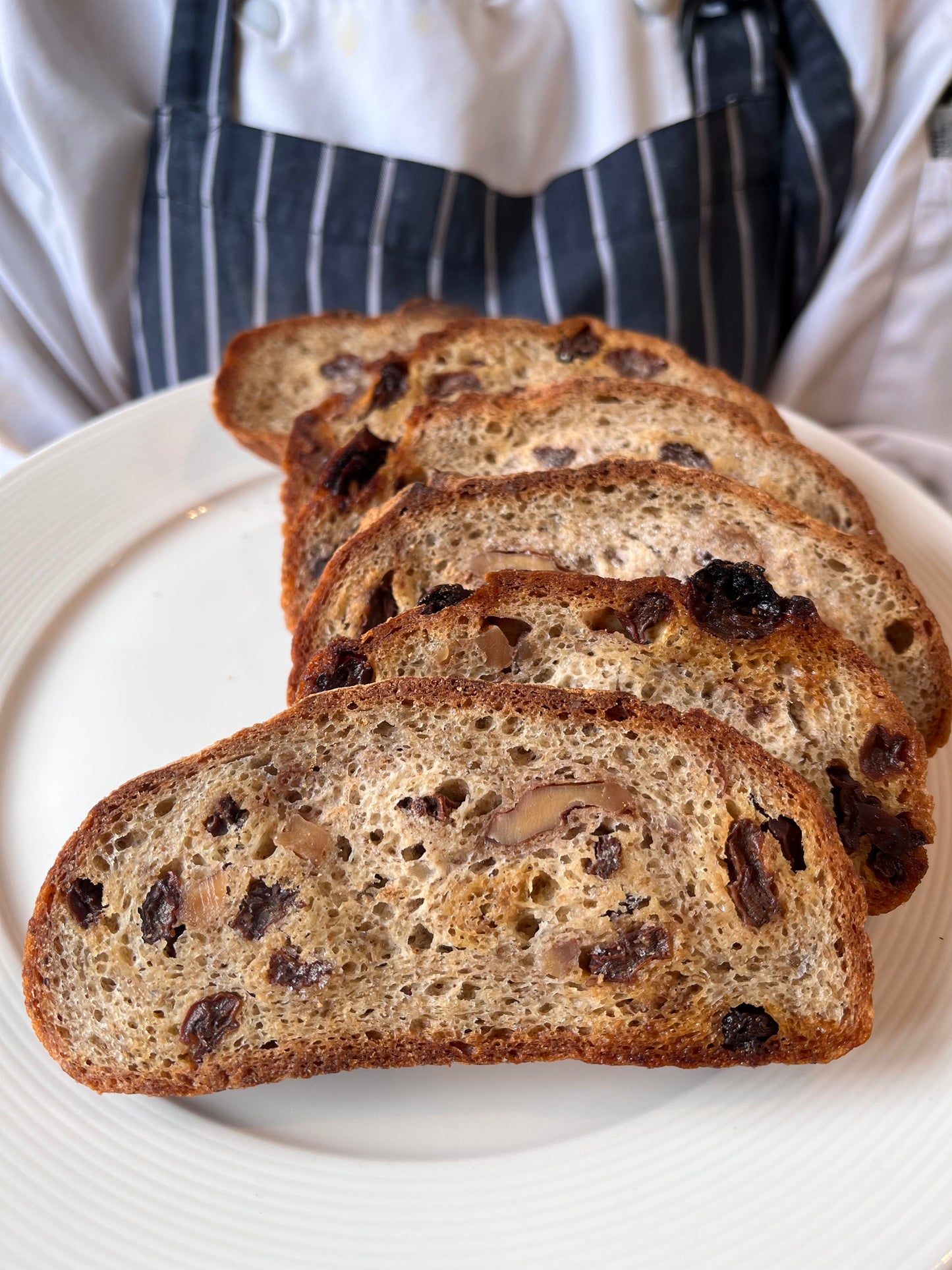 Made from the same base as our specialty gluten free Farmer's Loaf with organic raisins and walnuts.